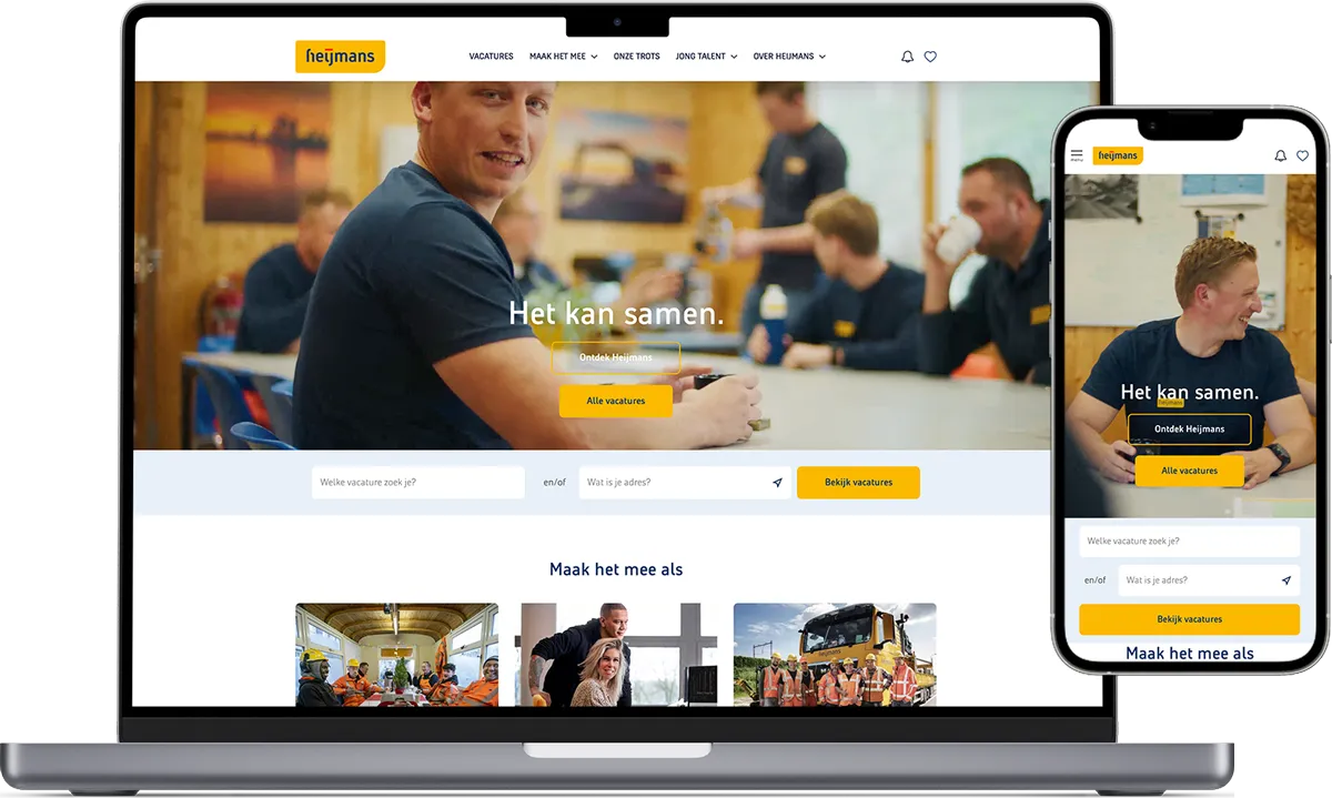 Daarom verdient jouw organisatie een vindbare, relevante en inspirerende werken-bij-website. Een plek waar bouwprofessionals zich herkennen in jullie waarden. Waar carrièremogelijkheden helder en aantrekkelijk worden gepresenteerd. En waar sollicitanten voelen: hier wil ik werken in een leuk kwalitatief team.